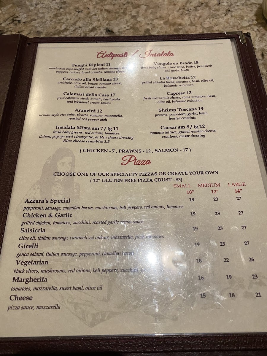 For a taste of tradition, try the Spaghetti Alla Bolognese or the hearty Lasagne Al Forno. The Specialita Della Casa like Vitello Alla Marsala promises a satisfyingly rich experience, complemented by a welcoming atmosphere and attentive service. Customer reviews highlight the generous portions and consistent quality, making Azzara’s a reliable stop for both locals and travelers alike. Come experience this delightful dining destination that truly captures the essence of Italian culinary craftsmanship!