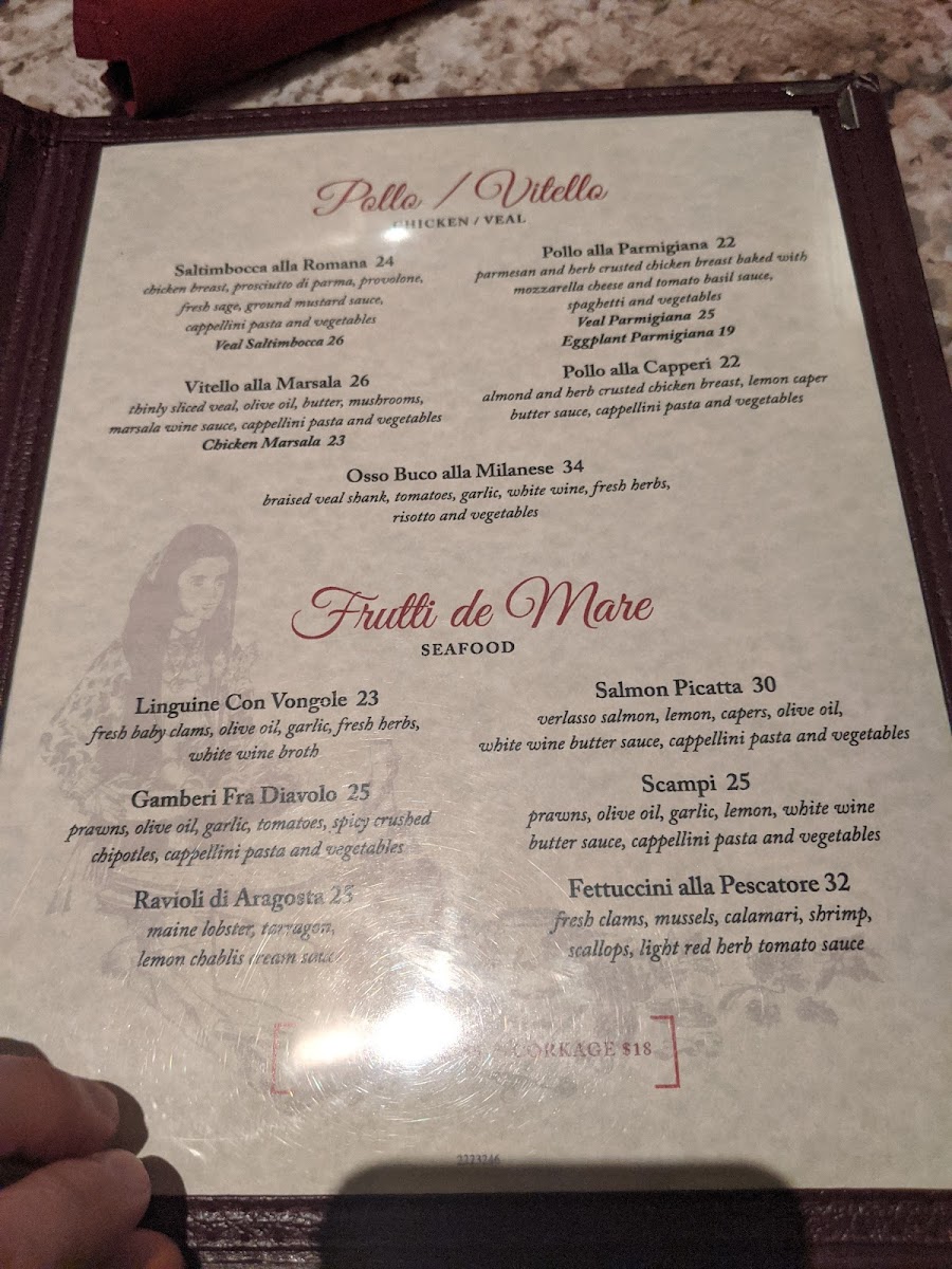 thinly sliced veal sauteed with olive oil, butter, mushrooms, and a marsala wine sauce, served over cappellini pasta with sauteed vegetables